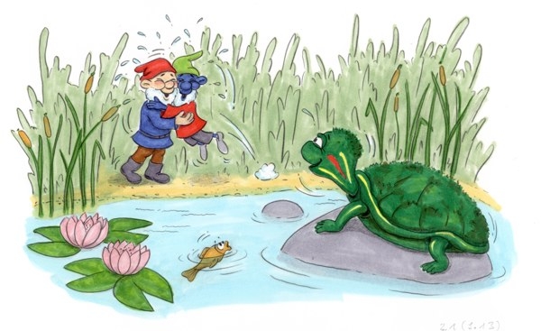Amadeus und Theodor sind zwei dicke Freunde, ein Heinzelmann und ein Gartenzwerg. Amadeus hat einen kleinen Schönheitsfehler, wenn auch nur er alleine dies als Fehler ansieht – er hat eine blaue Haut, die er gerne loswürde. Sein Versuch, eine helle Haut zu bekommen, führt ihn auf eine abenteuerliche Reise ins Regenland. Dort leben die kleinen Leute: Feen und Elfen, Zwerge und Gnome, Pixies und Ghule. Sie feiern gerade ein großes Sportfest und Amadeus gewinnt jeden Wettkampf, bis ... Und Theodor? Theodor versucht natürlich, dem Freund beizustehen. Selbst Tartaruga, die Wasserschildkröte, macht sich auf den Weg ins Regenland. Amadeus aber begreift am Ende, dass seine Hautfarbe für Freunde keine Rolle spielt. Leseprobe 32 Seiten, Festeinband Erhältlich durch jede Buchhandlung oder Kombiangebot: Amadeus und Theodor im Regenland - Band 3 gibt es auch mit einem englischen Zusatzheft Leider vergriffen!ISBN: 978-3-927455-98-6 Jahr: 2011 Preis: 12,80 Euro |